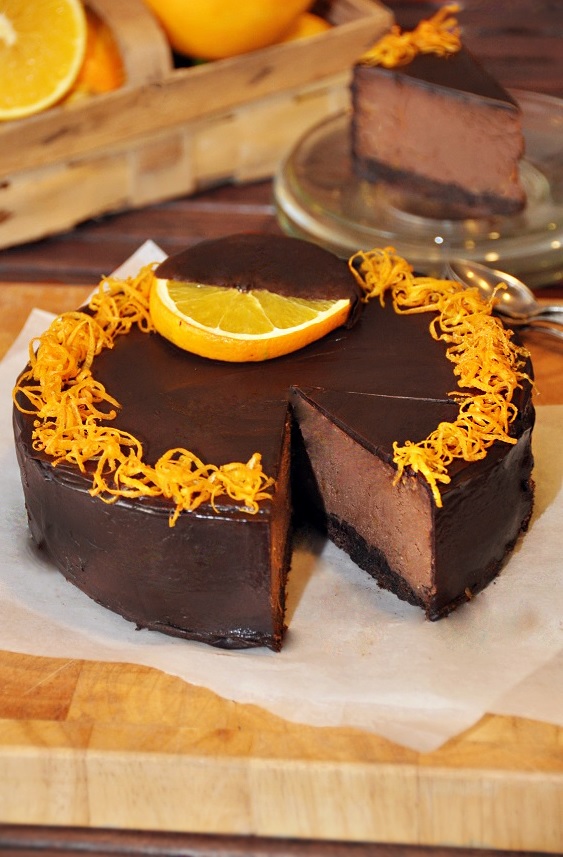 Przepyszny czekoladowy sernik, który zawiera prawie pół kilograma wedlowskiej czekolady! Na kruchym kakaowym spodzie, z kremową masą serową z kawałkami kandyzowanej skórki pomarańczowej. Ozdobiony lśniącym czekoladowym ganache. Dla wielbicieli intensywnie czekoladowych wypieków.
